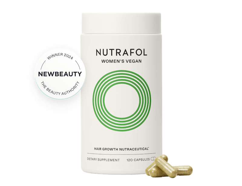 Nutrafol daily hair growth supplement is made for women 18-44 with a plant-based lifestyle who are experiencing signs of hair thinning. Physician-formulated with 100% vegan ingredients to target key root causes of thinning such as stress, nutrition, and metabolism. This formula results in faster-growing, visibly thicker, stronger hair and is an effortless addition to your daily wellness routine: 4 capsules, 1 easy step, all the results.